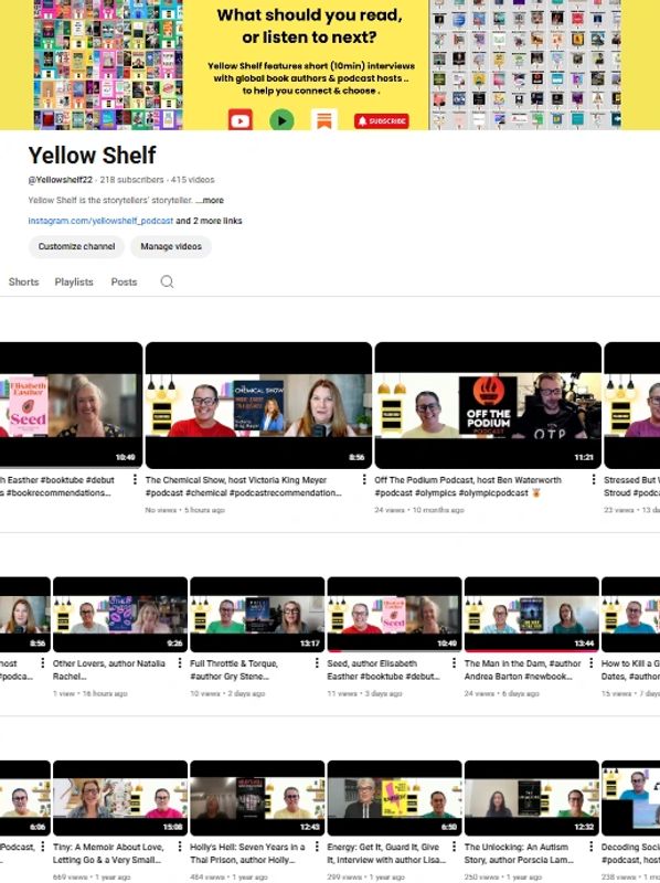 Yellow Shelf shares thoughtful short interviews with global authors, and podcast hosts.